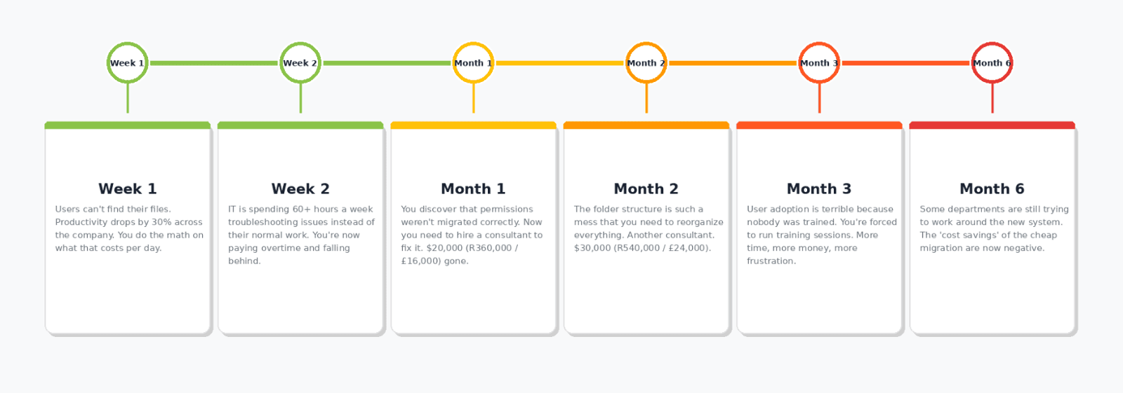 - Paid for consulting to fix migration problems? Sunk cost you wouldn't have had with proper planning.