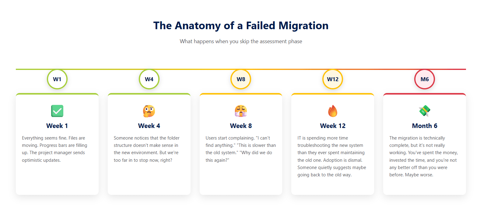 Because here's the truth: most SharePoint migrations don't fail during the migration itself. They fail long before anyone moves a single file.