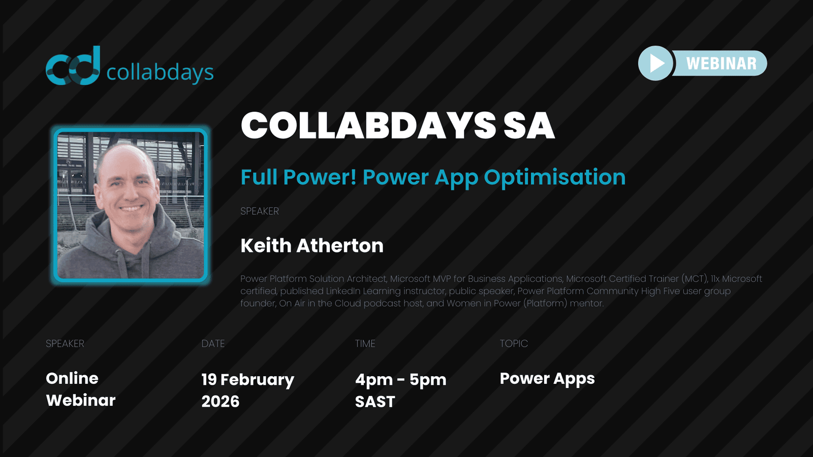 Slow, unresponsive apps frustrate users and generate endless support tickets. In this session, Microsoft MVP Keith Atherton demonstrates practical techniques for code and architectural optimisation, smarter UX design, and performance monitoring—so you can transform sluggish Power Apps into lightning-fast solutions your users actually enjoy.